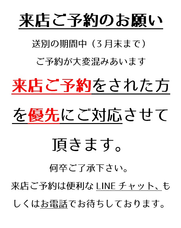 期間中の来店ご予約のお願い